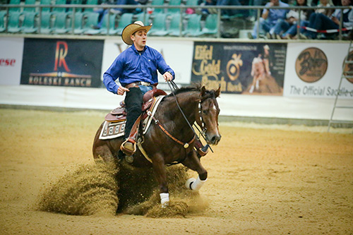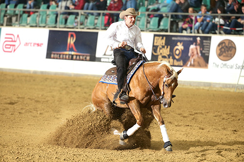 Jp Great Lil Wimpy (Bes. Franz Koldas, Kaufferbern, Germany) unter Tomas Martinek ($41,600 NRHA LTE) aus der Tschechischen Republik.