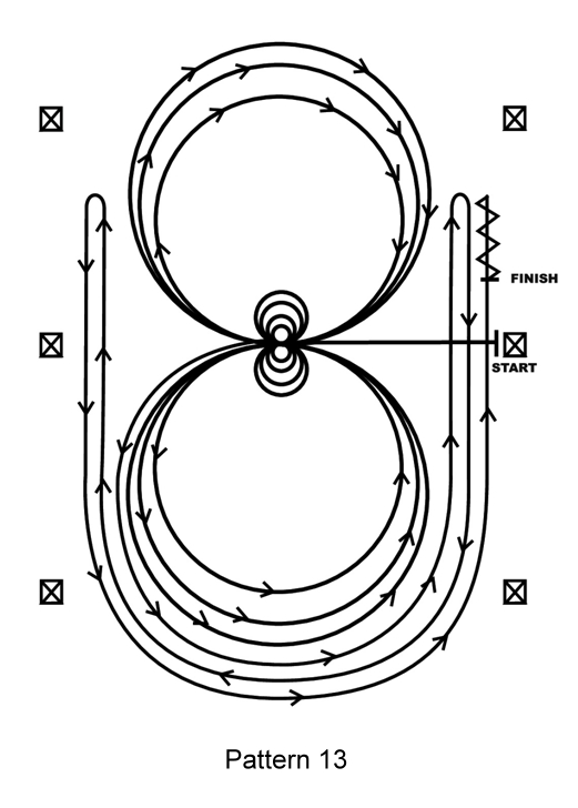 1/2 Penalty: Wenn in einem Pattern ein Run-Around gefordert wird und nicht ein Mindestabstand von 3Metern beidseitig zur Mittellinie der Arena eingehalten wird.